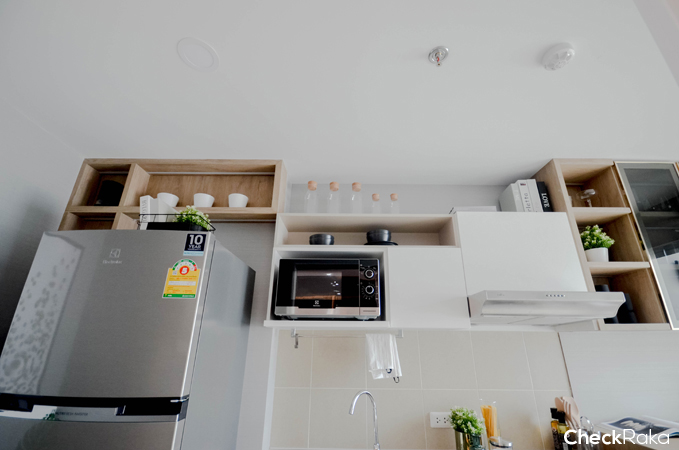 ซ้ายมือจะเป็นที่วางตู้เย็นมีที่เหลือวางของตกแต่งน่ารักๆ ด้วย