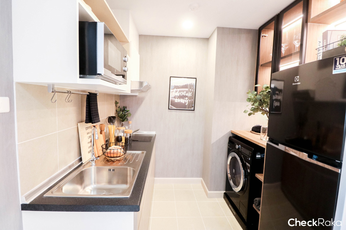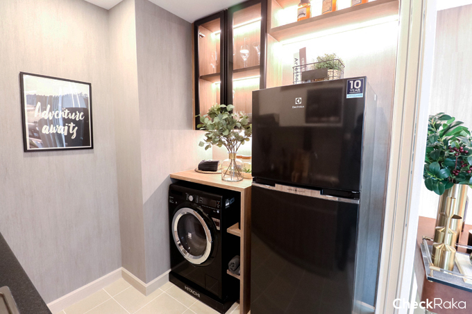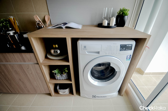 อีกฝั่งจะเป็นพื้นที่วางเครื่องซักผ้าและตู้เย็น