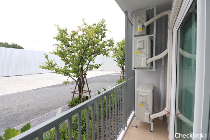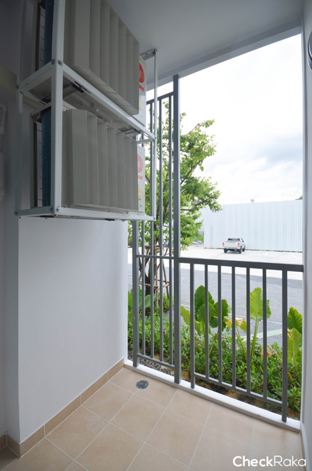 ที่ระเบียงด้านบนจะเป็นที่วางคอมเพรสเซอร์แอร์ แต่จะมีกริลไล่ให้ลมออกไปด้านนอกค่ะ