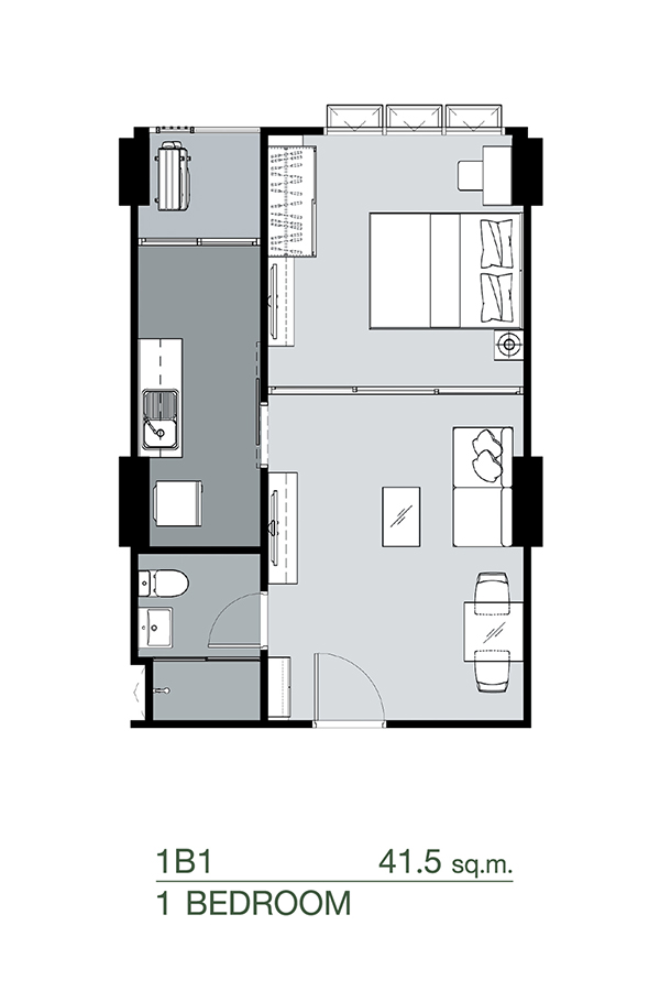 1 ห้องนอน ขนาด 41.5 ตร.ม.