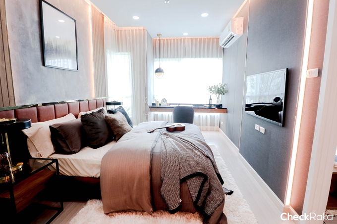 ปลายเตียงจะเป็นพื้นที่สำหรับวางตู้เสื้อผ้าและติดตั้งโทรทัศน์
