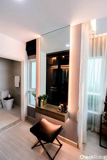 พื้นที่ติดกับหน้าต่างก็เหมาะมากสำหรับวางโต๊ะเครื่องแป้งเพราะแสงเข้ามาพอดี