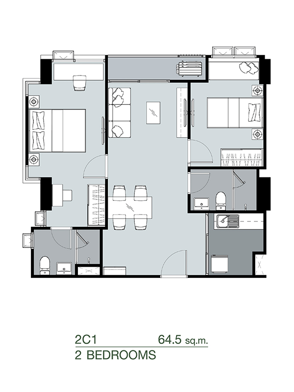 2 ห้องนอน ขนาด 64.5 ตร.ม.