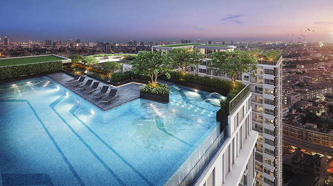 สระว่ายน้ำบนชั้นสูงสุดของอาคาร