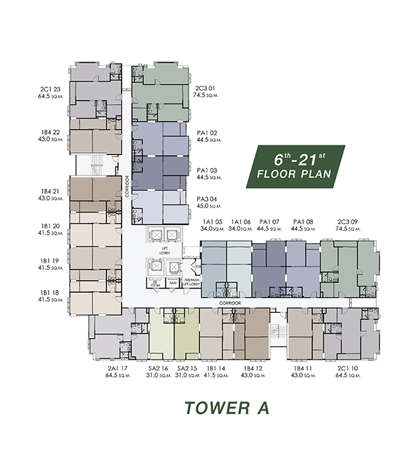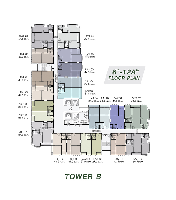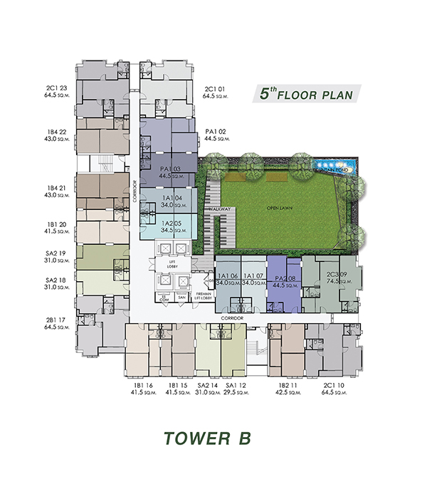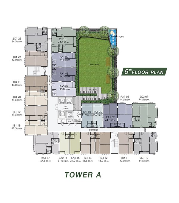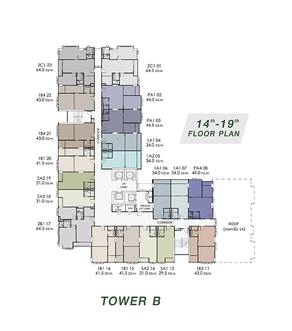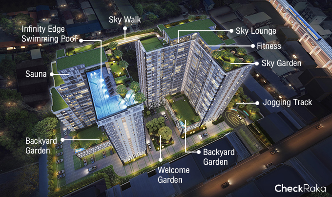 จำนวนห้องพักอาศัย : 726 ยูนิต (อาคาร A จำนวน 374 ยูนิต และ อาคาร B จำนวน 352 ยูนิต)