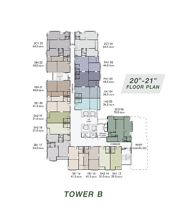 อาคารชุดพักอาศัยสูง : 22 ชั้น (รวมชั้นดาดฟ้า) จำนวน 2 อาคาร