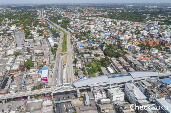 ถนนด้านหน้าโครงการ มีแนวรถไฟฟ้าสายสีน้ำเงินเรียบร้อยแล้ว