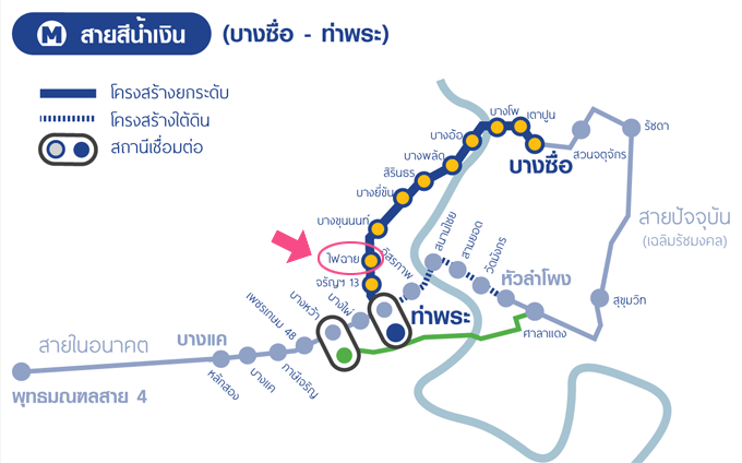 เดินทางด้วยรถไฟฟ้าสายสีน้ำเงิน (บางซื่อ-ท่าพระ)