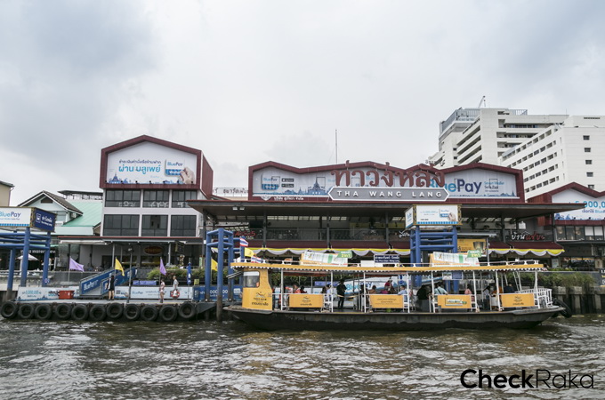 บรรยากาศบริเวณท่าวังหลัง ซึ่งด้านในจะมีร้านอาหาร ร้านค้าคอยบริการอยู่เยอะแยะ