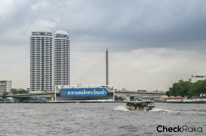 เรือด่วนบนแม่น้ำเจ้าพระยา สามารถมองเห็นสะพานปิ่นเกล้า และด้านหลังเป็นสะพานพระราม 8 ค่ะ