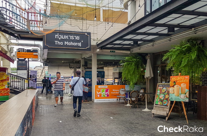 บรรยากาศภายในท่ามหาราช มีร้านอาหารน่านั่งหลายร้าน