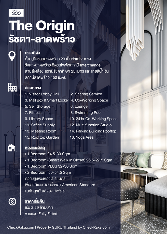 รีวิว The Origin รัชดา-ลาดพร้าว ใกล้ Interchange รถไฟฟ้าสายสีเหลืองและสีน้ำเงิน เริ่ม 2.29 ล้านบาท*