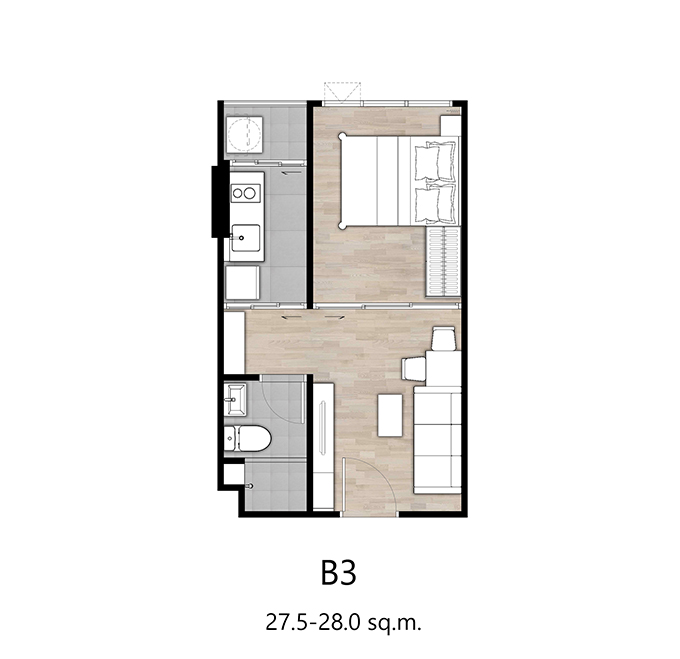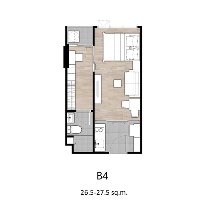 แบบ 1 ห้องนอน ขนาด 27 ตร.ม.