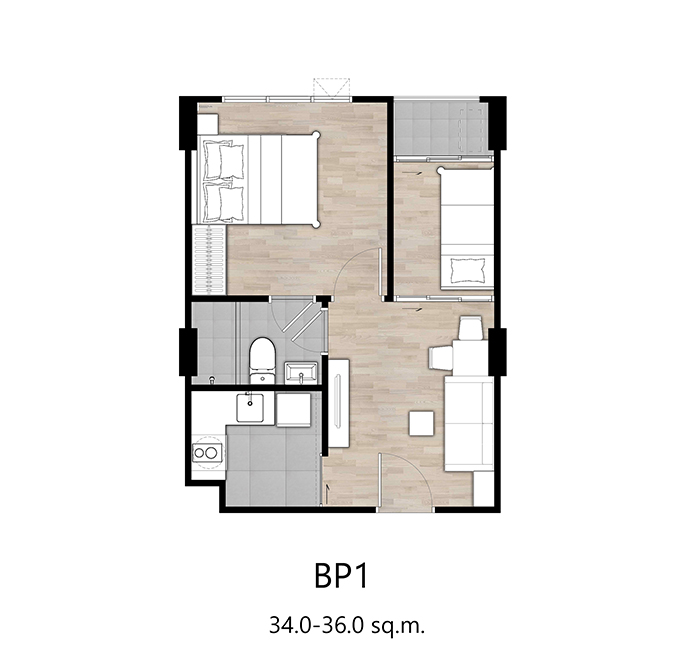 แบบ 1 ห้องนอนพลัส ขนาด 34 ตร.ม.