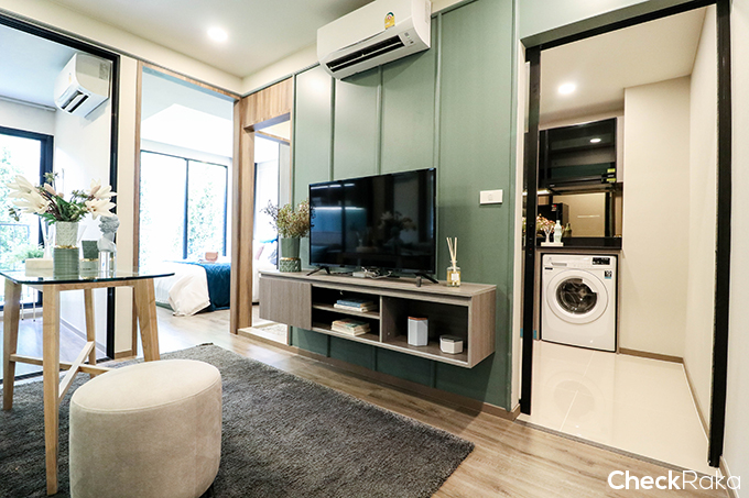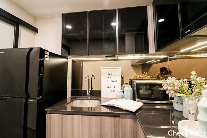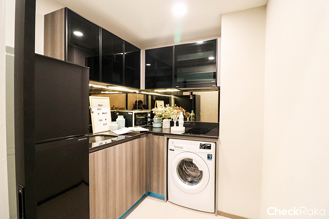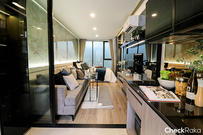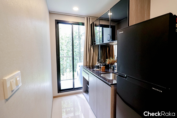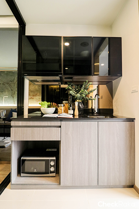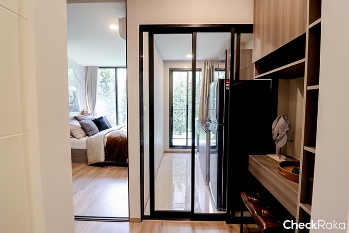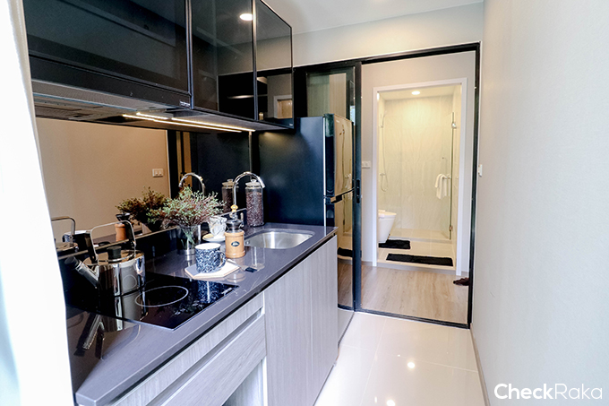 ห้องครัวจะอยู่โซนหน้าของห้อง แต่มีประตูบานเลื่อนปิดให้