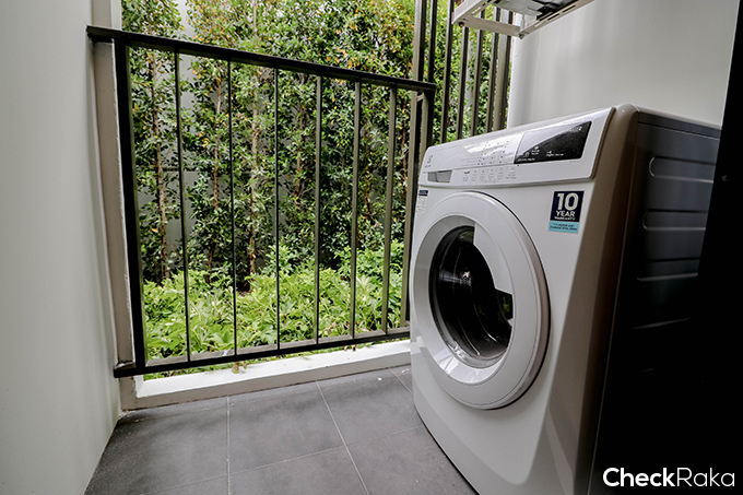 ส่วนระเบียงจะติดตั้งระบบสำหรับเครื่องซักผ้าให้ค่ะ
