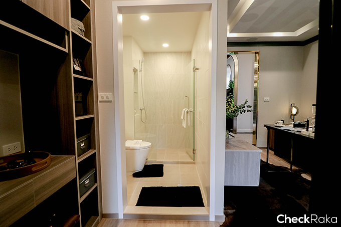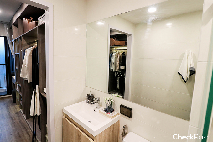 มาถึง Highlight ของห้องค่ะ ก็คือ Smart Walk in Closet นั่นเอง ก่อนเข้าโซนนี้จะมีประตูบานสไลด์ให้ด้วย