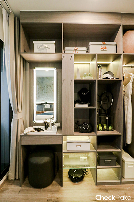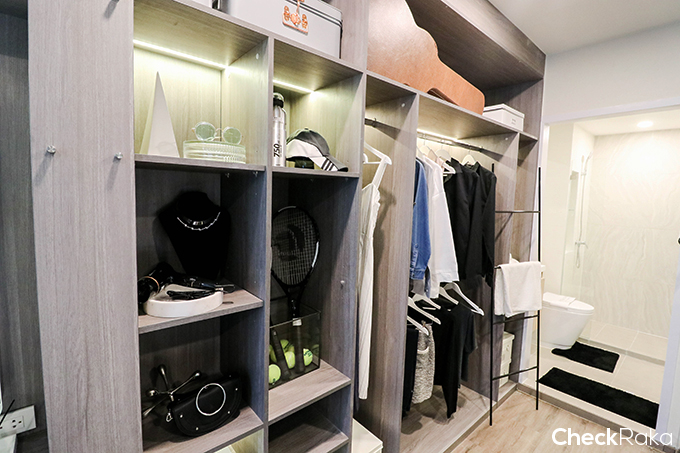 โครงการ Built-in ให้เต็มพื้นที่เลยค่ะ ตัว Smart Walk in Closet นี้ทั้งตู้เก็บของ เก็บเสื้อผ้า มีช่องเก็บเสื้อผ้าหลายขนาด