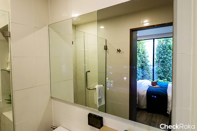 ห้องขนาด 1 Bedroom Plus ขึ้นไปจะได้ Smart Mirror ด้วย หลักการทำงานเหมือนกับ Tablet ทุกอย่าง