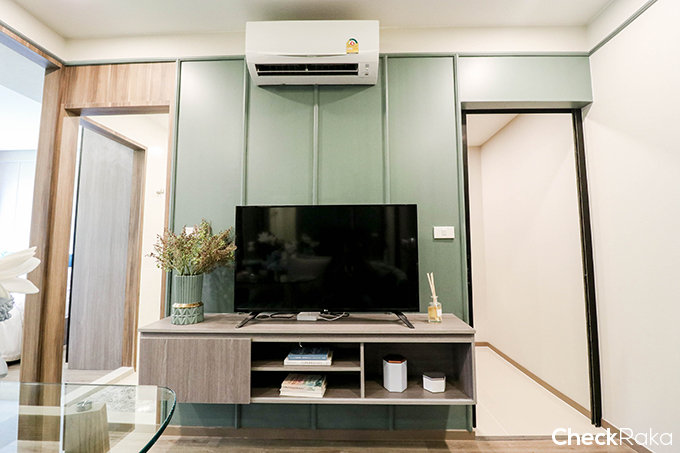 ห้องนี้ระยะดูทีวีจะกว้างขึ้นมาอีก ความสูงจากพื้นจรดฝ้าก็ยังคงอยู่ที่ 2.5 เมตร