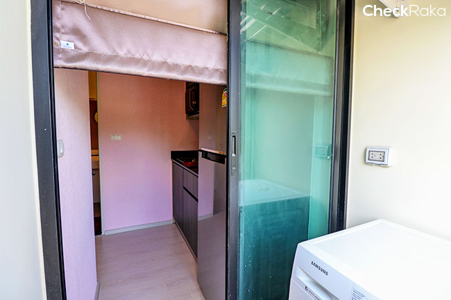 ระเบียงสามารถวางเครื่องซักผ้าได้ค่ะ กระจกทั้งหมดจะเป็นกระจกเขียวตัดแสงค่ะ