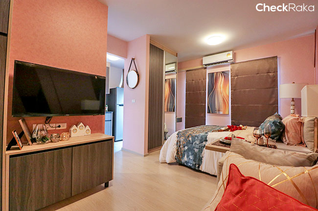 มาห้องตัวอย่าง ขนาด 22 ตร.ม. ค่ะ เปิดประตูเข้าไปกันเลย