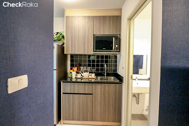 ไปห้องครัวกันต่อค่ะ ขวามือคือห้องน้ำค่ะ เฟอร์นิเจอร์ในห้องครัว จะได้แบบนี้เลยค่ะ (ยกเว้นเครื่องใช้ไฟฟ้า)
