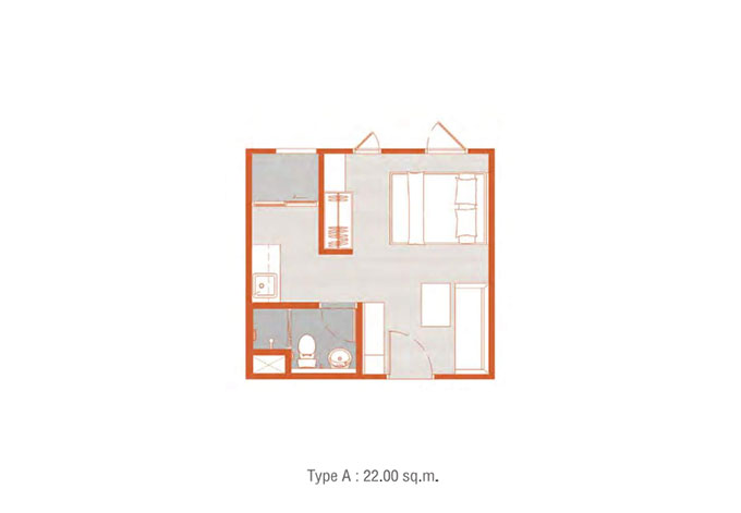 1. ห้องตัวอย่าง Type A ขนาด 22.00 ตร.ม.