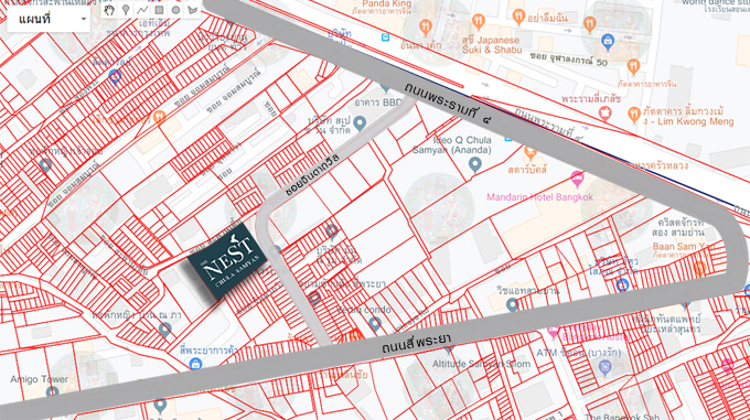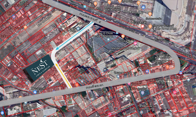 แผนที่ผังที่ดินโครงการ เดอะ เนสท์ จุฬา-สามย่าน ตัวโครงการตั้งอยู่ภายในซอยจินดาถวิล