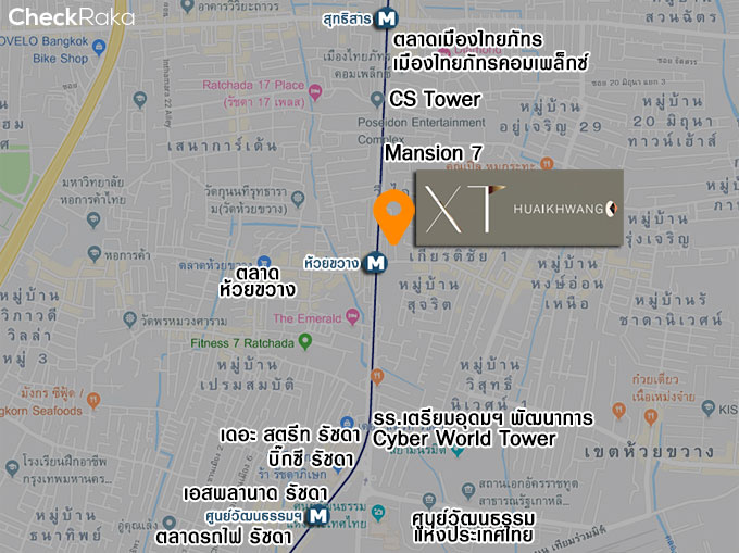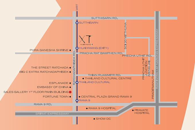 เอ็กซ์ที ห้วยขวาง (XT Huaikhwang) ตั้งอยู่ติดถนนรัชดาภิเษก ห่างจาก MRT สถานีห้วยขวาง 75 เมตรเท่านั้น หมดห่วงเรื่องการเดินทาง และยังไม่ไกลจาก New CBD พระราม 9 นั่ง MRT แค่ 4 สถานีถึง Asoke Interchange