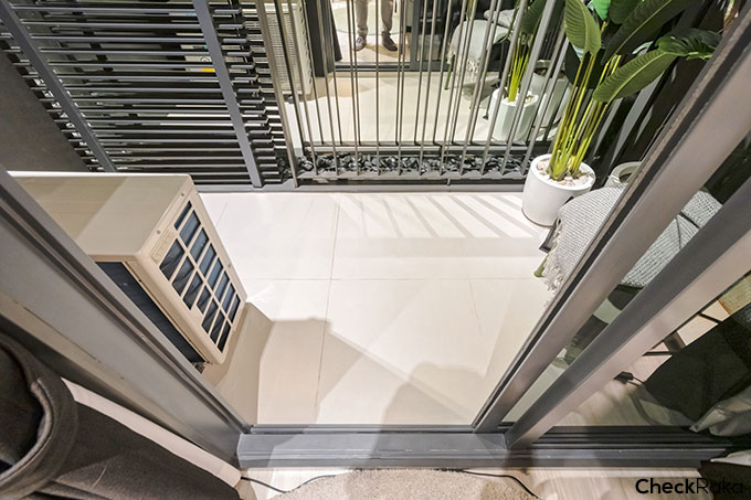 พื้นที่ระเบียงกว้างพอสมควร วางกระถางต้นไม้ รวมถึงออกไปยืนสูดอากาศได้