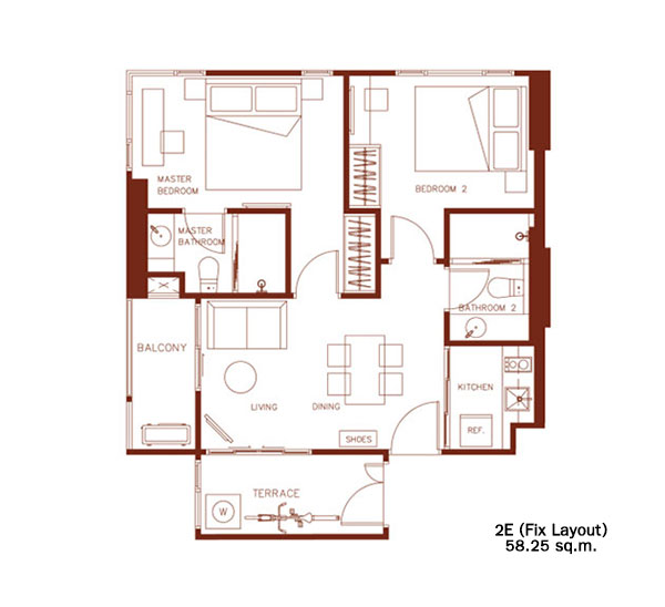 - ห้องตัวอย่างแบบ 2 ห้องนอน 2 ห้องน้ำ ขนาด 58.25 ตร.ม.
