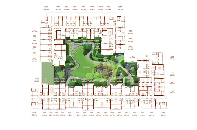 Master Plan สังเกตตรงส่วนทางเข้าจะมีพื้นที่สีเขียวตลอดเส้นทาง รวมถึง Pocket Garden ด้วยค่ะ