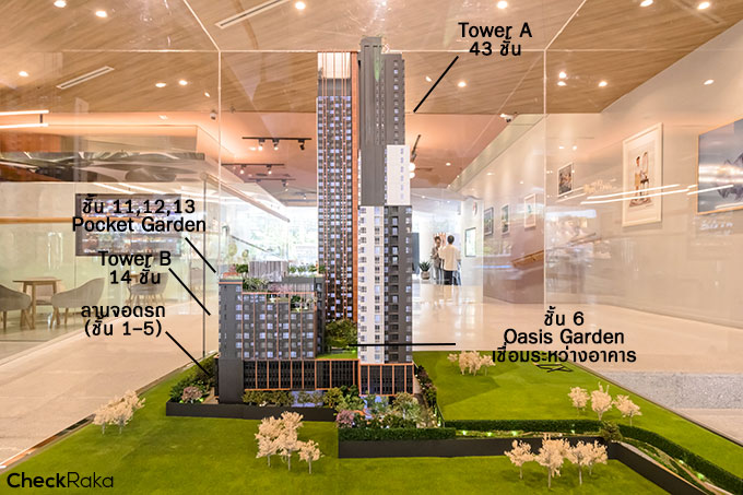 อาคารชุดพักอาศัย : 2 อาคาร Tower A 43 ชั้น Tower B 14 ชั้น 1,404 ยูนิต และอาคารเพื่อการพาณิชย์ 1 ยูนิต (Family Mart)