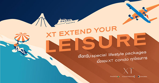 และตอนนี้ XT มี LIFESTYLE CAMPAIGN ที่สามารถเลือกรับข้อเสนอพิเศษจาก XT คอนโดมิเนียม ทั้ง 3 ทำเล เอกมัย, ห้วยขวาง และพญาไท LIFESTYLE PACK เลือกแพ็กเกจ กิน เที่ยว* ตามมูลค่าเงินจอง และทําสัญญา ทราบมาว่าเป็นที่พักสุดชิคจากโรงแรม The Standard หรือเลือก DISCOUNT PACK รับส่วนลดเท่ากับเงินจอง สูงสุด 600,000 บาท* แทน วันนี้ - 31 ต.ค. 62 *เงื่อนไขเป็นไปตามที่บริษัทฯ กำหนด
