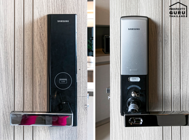 ทุกยูนิตจะมี Digital Door Lock ของ Samsung ให้ สามารถใช้งานได้ ทั้งการใส่พาสเวิร์ด หรือใช้การ์ดค่ะ