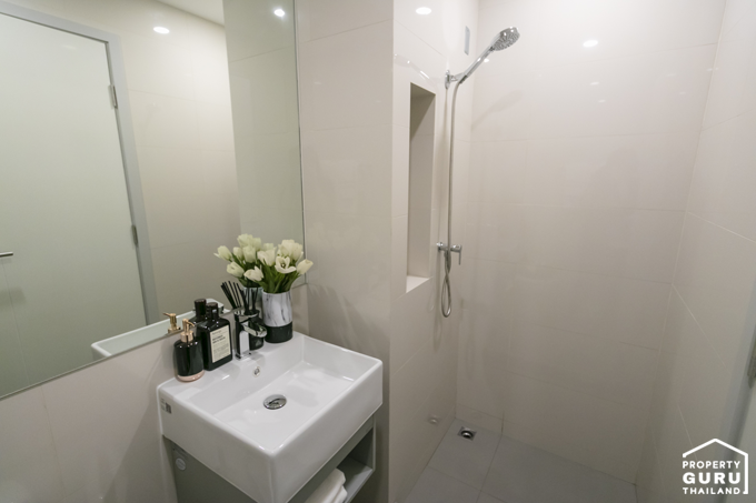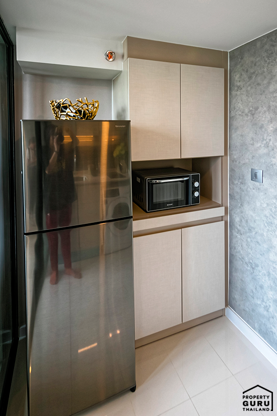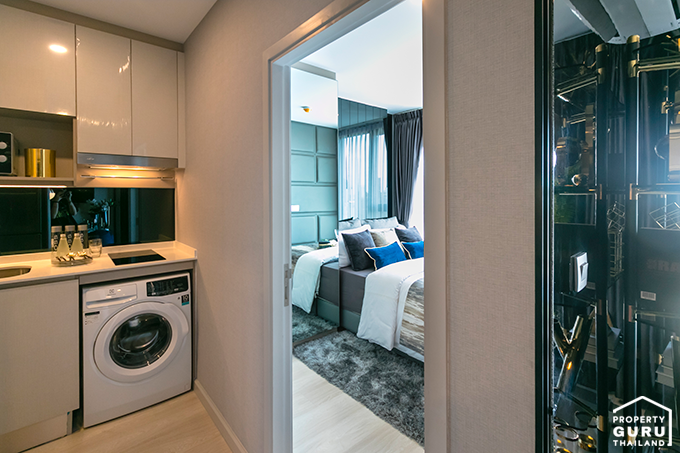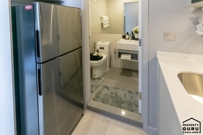 ระหว่างห้องนอนและห้องน้ำมีพื้นที่ Built-in เคาน์เตอร์ครัว