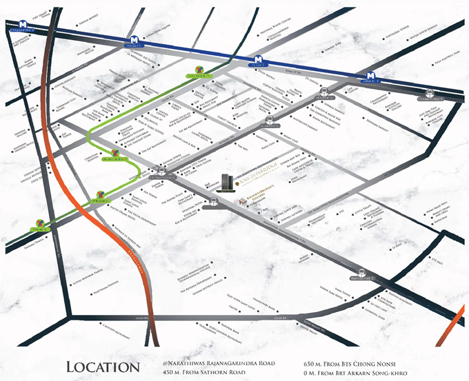 - ที่ตั้งโครงการ : ถนนนราธิวาสราชนครินทร์ 13 แขวงมหาเมฆ เขตสาทร กรุงเทพฯ 10120