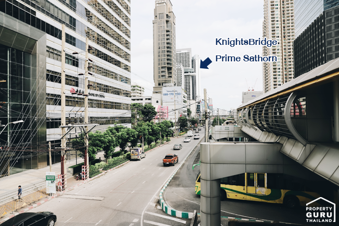 จากสะพานที่แยกสาทรตัดนราธิวาสฯ จะเห็นโครงการ ไนท์บริดจ์ ไพร์ม สาทร อยู่ไม่ไกล