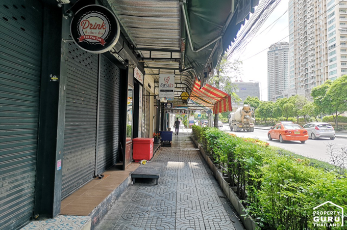 ถนนทางเดินไปโครงการมีร้านอาหารให้เลือกหลายร้าน