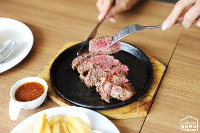 มาร้านเนื้อทั้งที ต้องสั่งสเต็กเนื้อ ทางร้านทำมาแบบ Medium Rare นุ่มมากกกก
