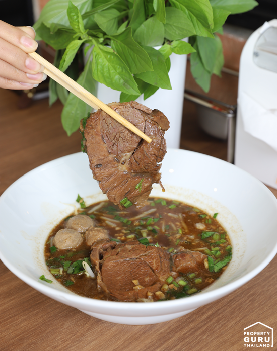 และพลาดไม่ได้กับเมนูแบบสตรีทฟู้ดของไทย คือก๋วยเตี๋ยวเนื้อตุ๋น จานนี้แค่ 70 บาท ได้เนื้อชิ้นใหญ่มาก