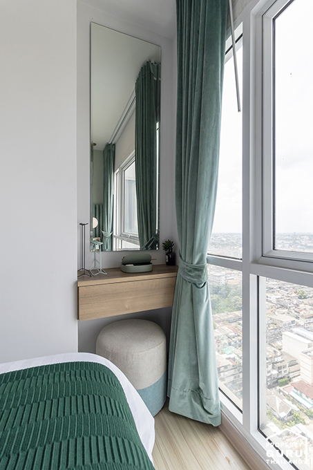 ปลายเตียงมีมุมแต่งหน้าเล็กๆ ซ่อนอยู่