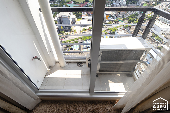 ระเบียงจะมีคอมเพรสเซอร์แอร์ตั้งอยู่ที่พื้น 1 เครื่อง และแขวนไว้ที่ด้านบนอีก 1 เครื่อง