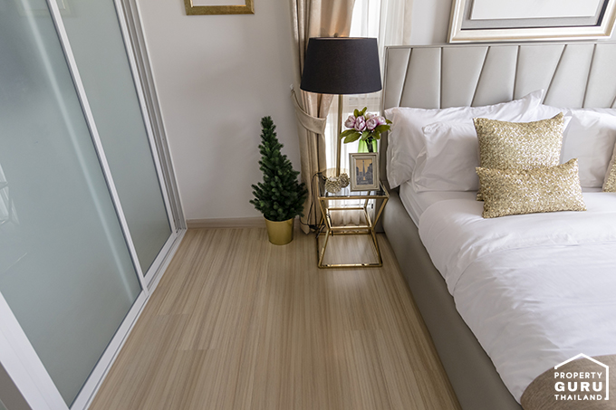 พื้นที่ข้างเตียงฝั่งตู้เสื้อผ้าเหลือแบบยืนแต่งตัวได้สบายๆ