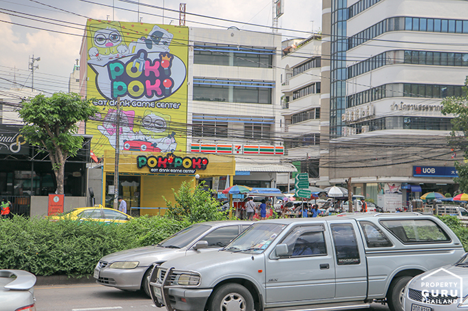 แถวนี้ไม่เงียบเหงาเลยค่ะ มีร้านสะดวกซื้อ ร้านขายของ ร้านเกมเต็มไปหมด