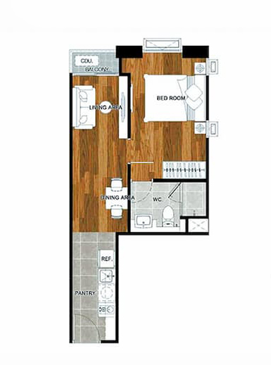 ห้องตัวอย่าง 1 ห้องนอน ขนาดประมาณ 33 ตร.ม.
