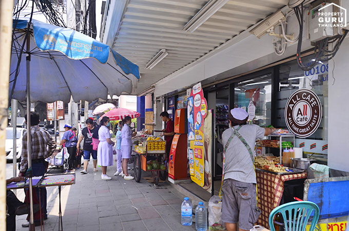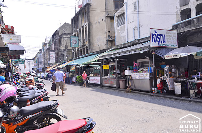 พื้นที่ส่วนใหญ่เป็นตึกแถว 3-4 ชั้น ที่ชั้นล่างเปิดเป็นร้านค้า ไม่ว่าจะเป็นร้านเสื้อผ้า รวมถึงร้านอาหาร