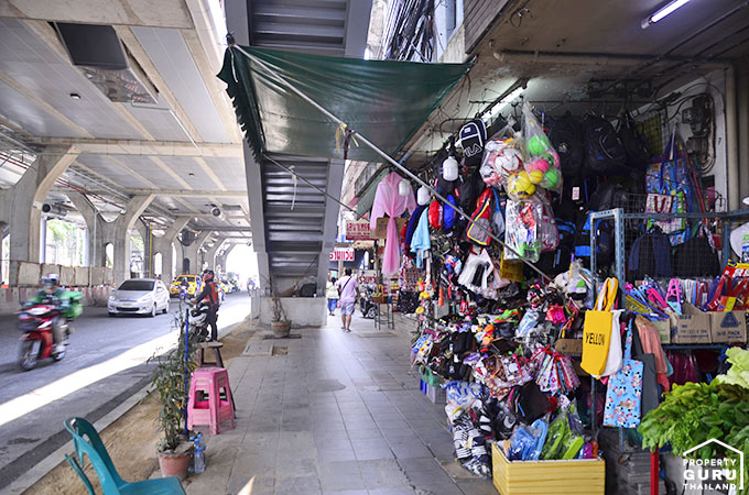 สภาพแวดล้อมใกล้ๆ สถานีรถไฟฟ้าก็ยังคงเป็นร้านขายของ ของกินของใช้ครบครันค่ะ