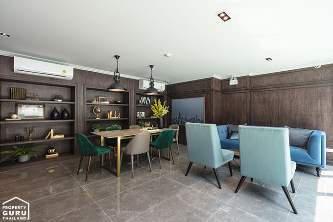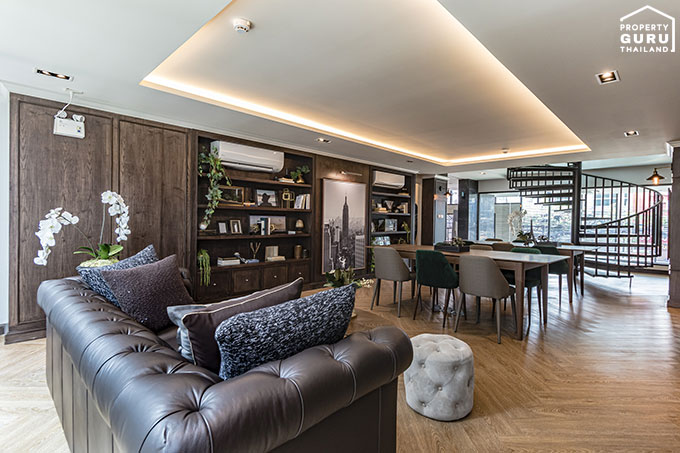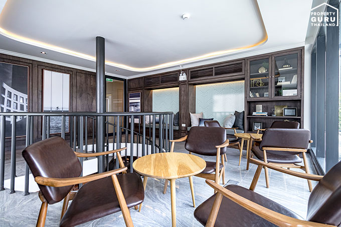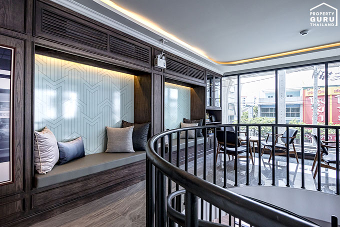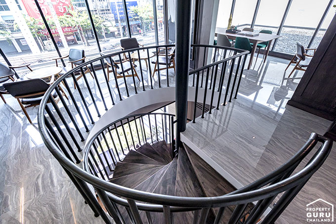 มีพื้นที่นั่งพักผ่อนสำหรับลูกบ้านเยอะเลยค่ะ พร้อมบันไดวนสุดเก๋ขึ้นไปยังชั้น 3